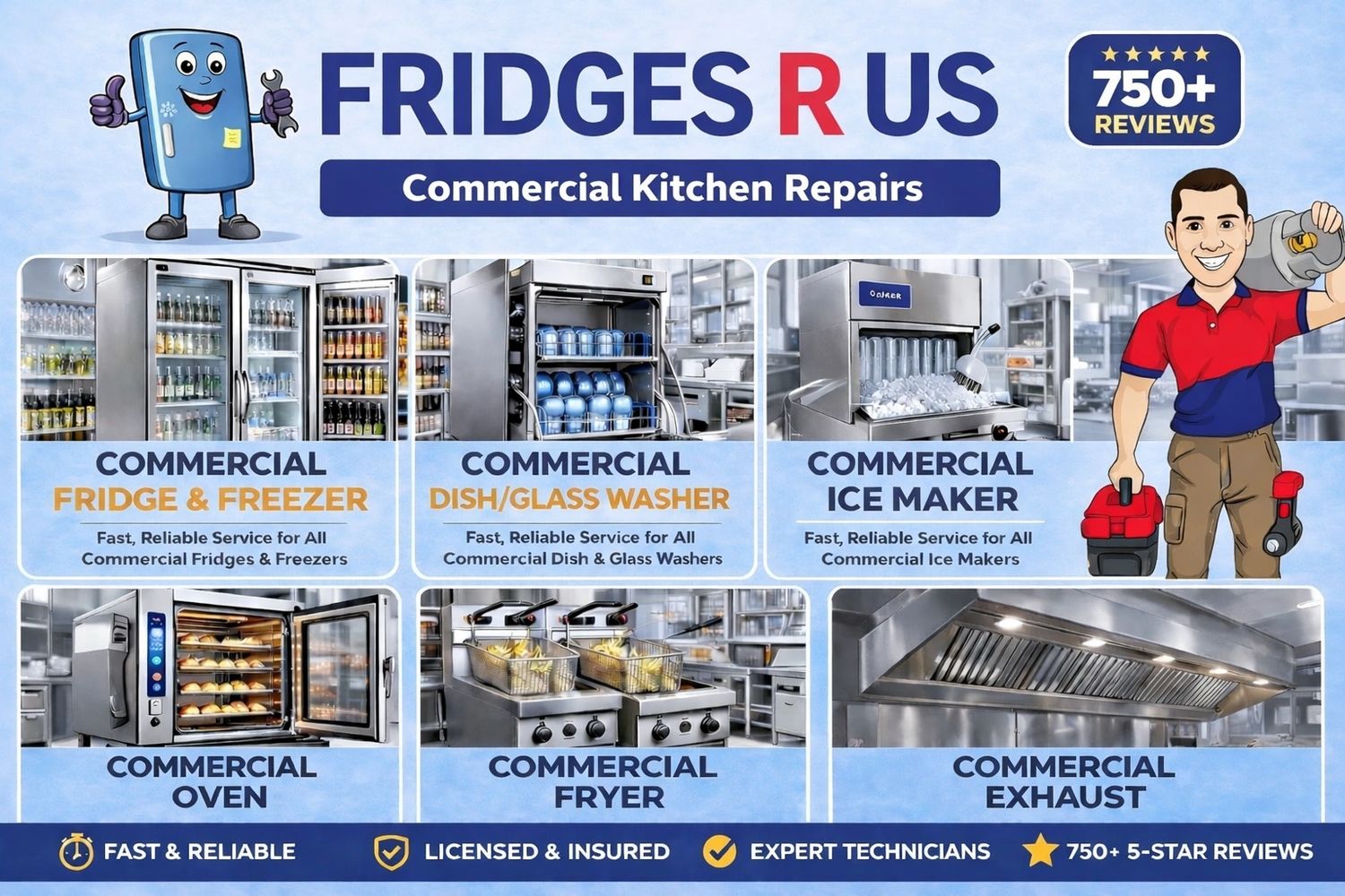 With over 750+ 5-Star Google Reviews, our fully licensed refrigeration mechanics and electricians provide fast, reliable onsite service to keep your business running and minimize costly downtime.